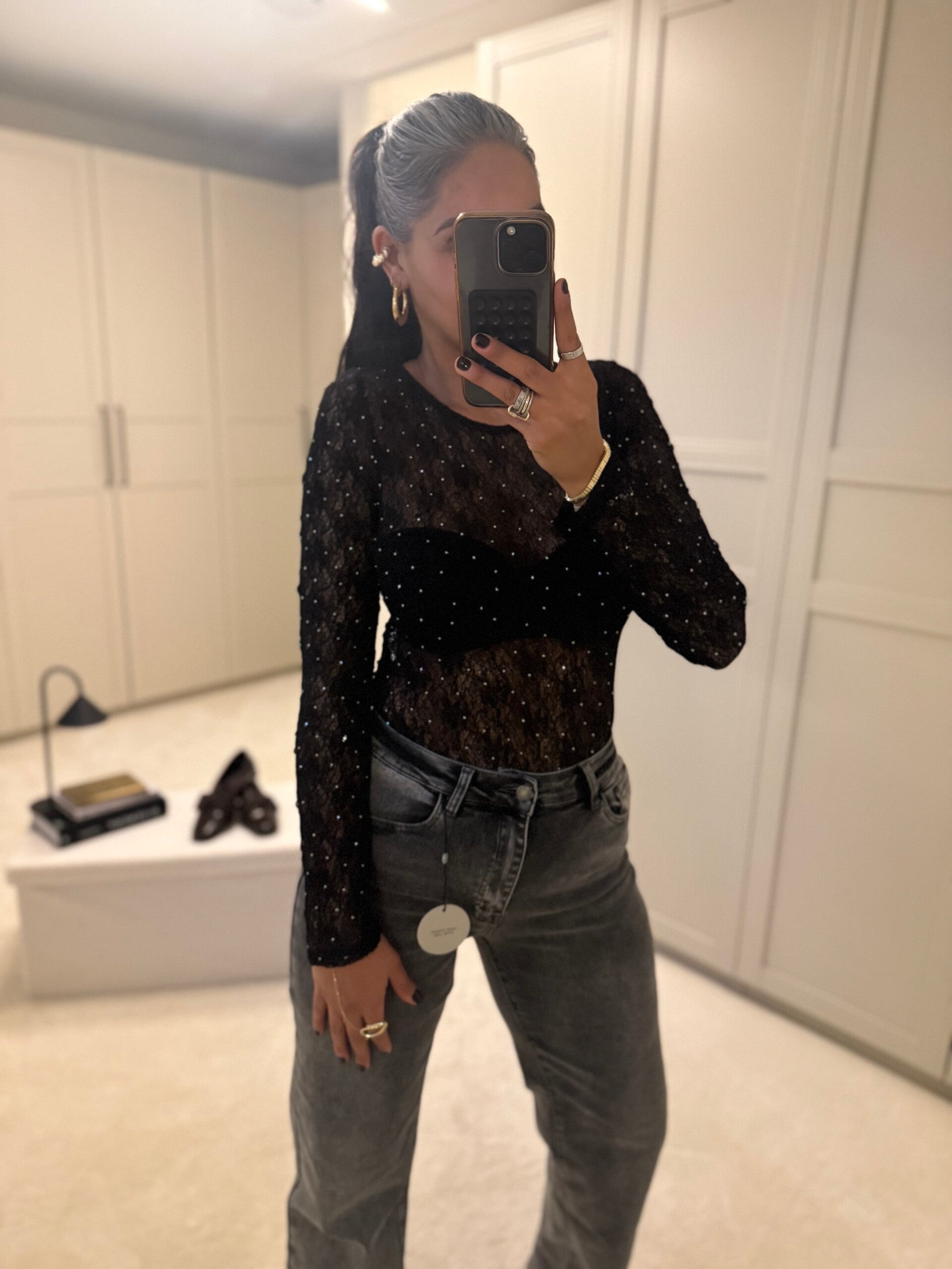 • Met steentjes bewerkt