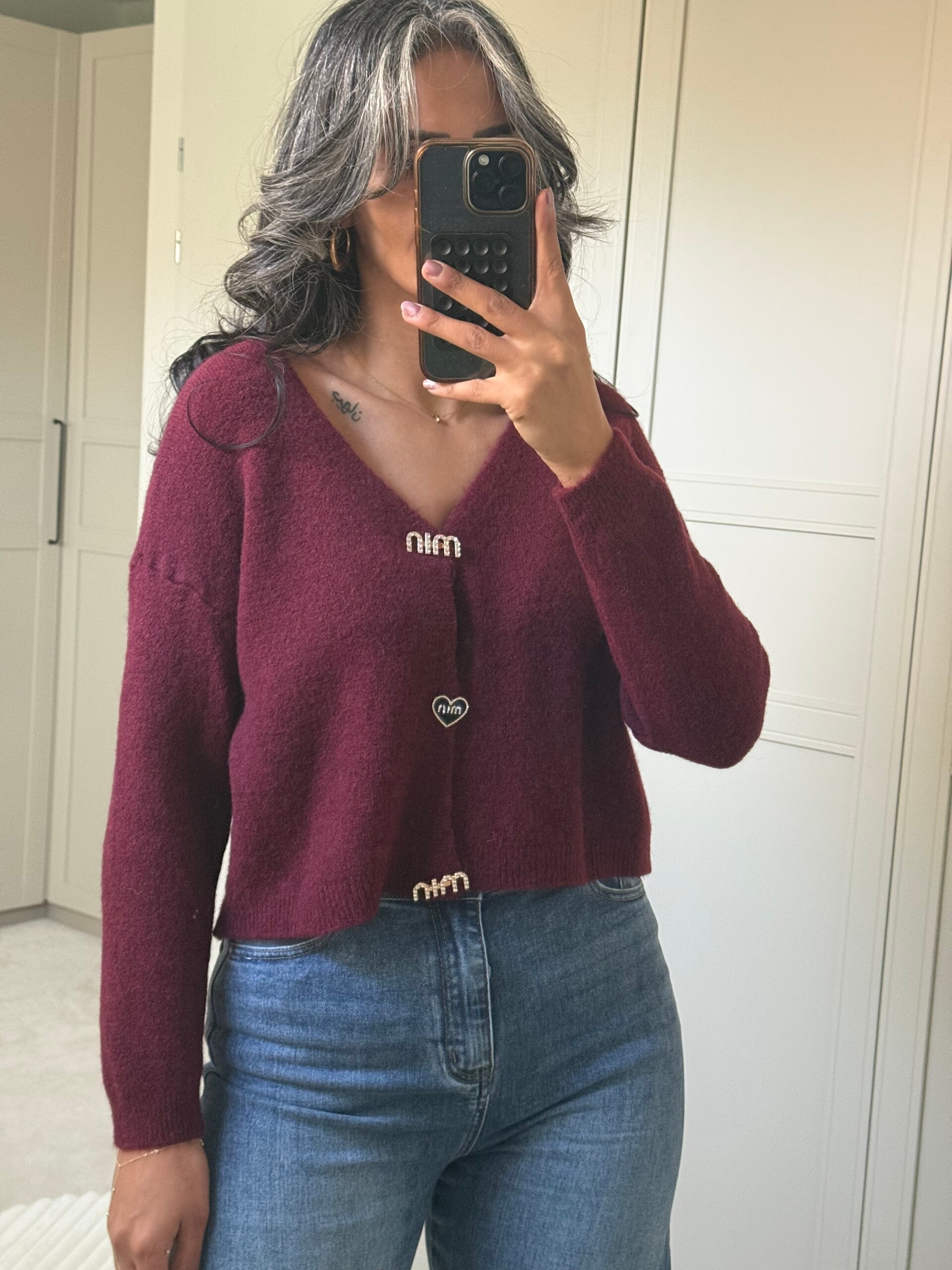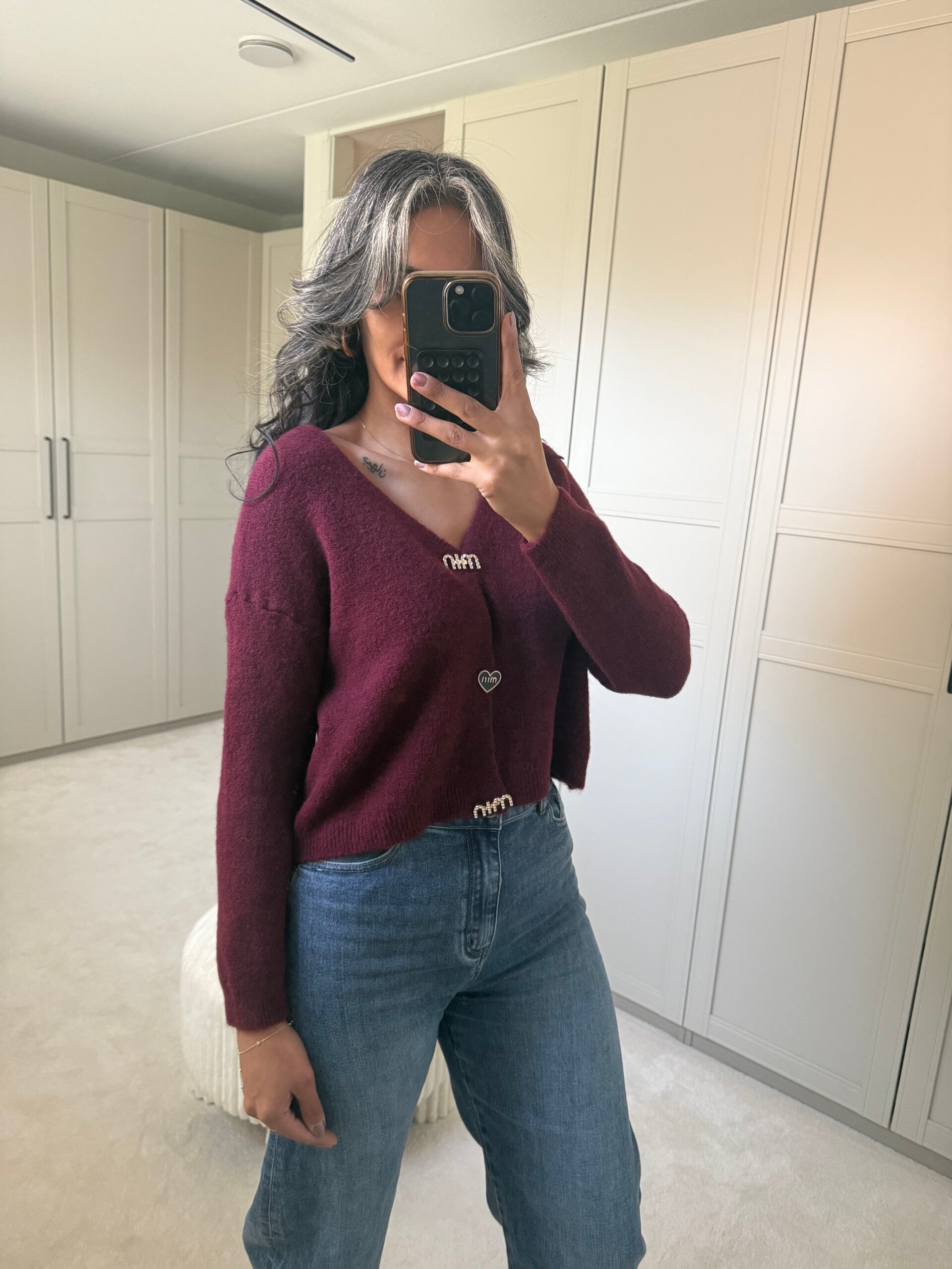 Korte vest met button BURGUNDY
