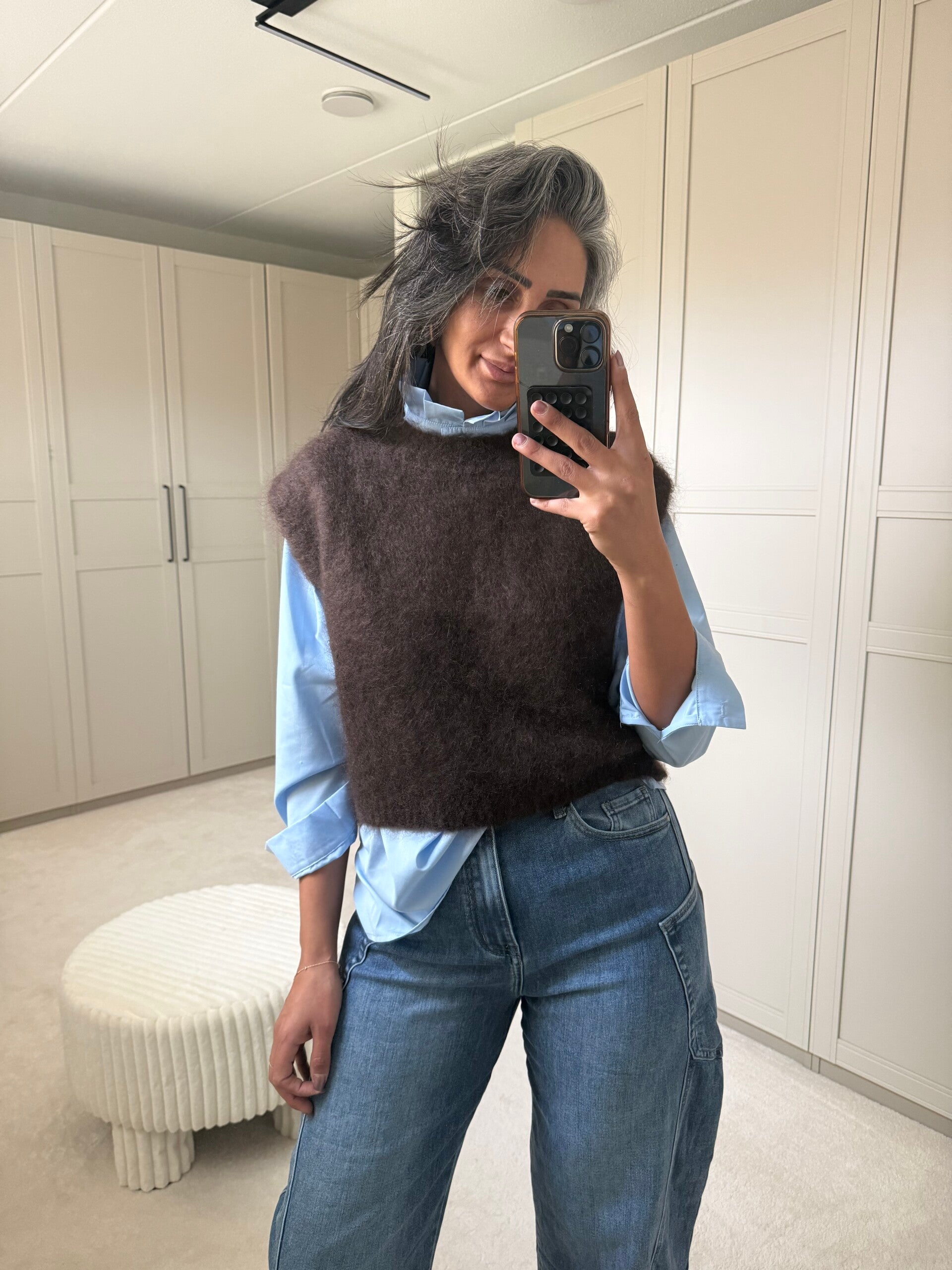 Blouse kun je heel leuk combineren met onze spencer of trui