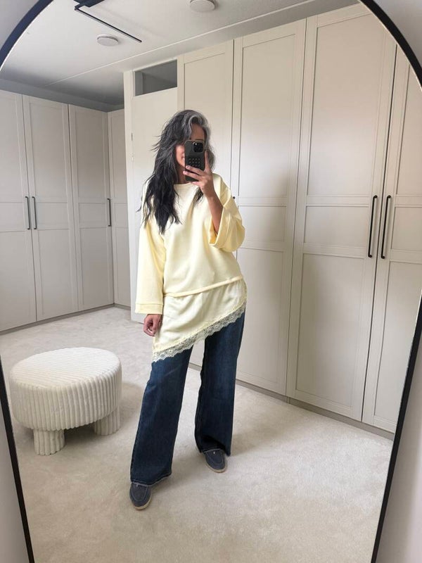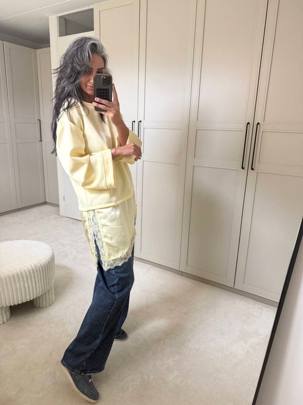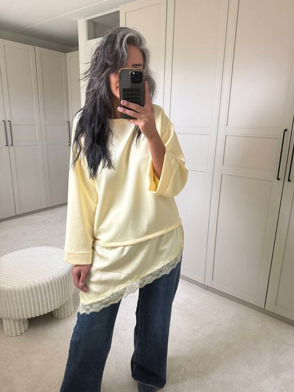 Botergeel trui kant