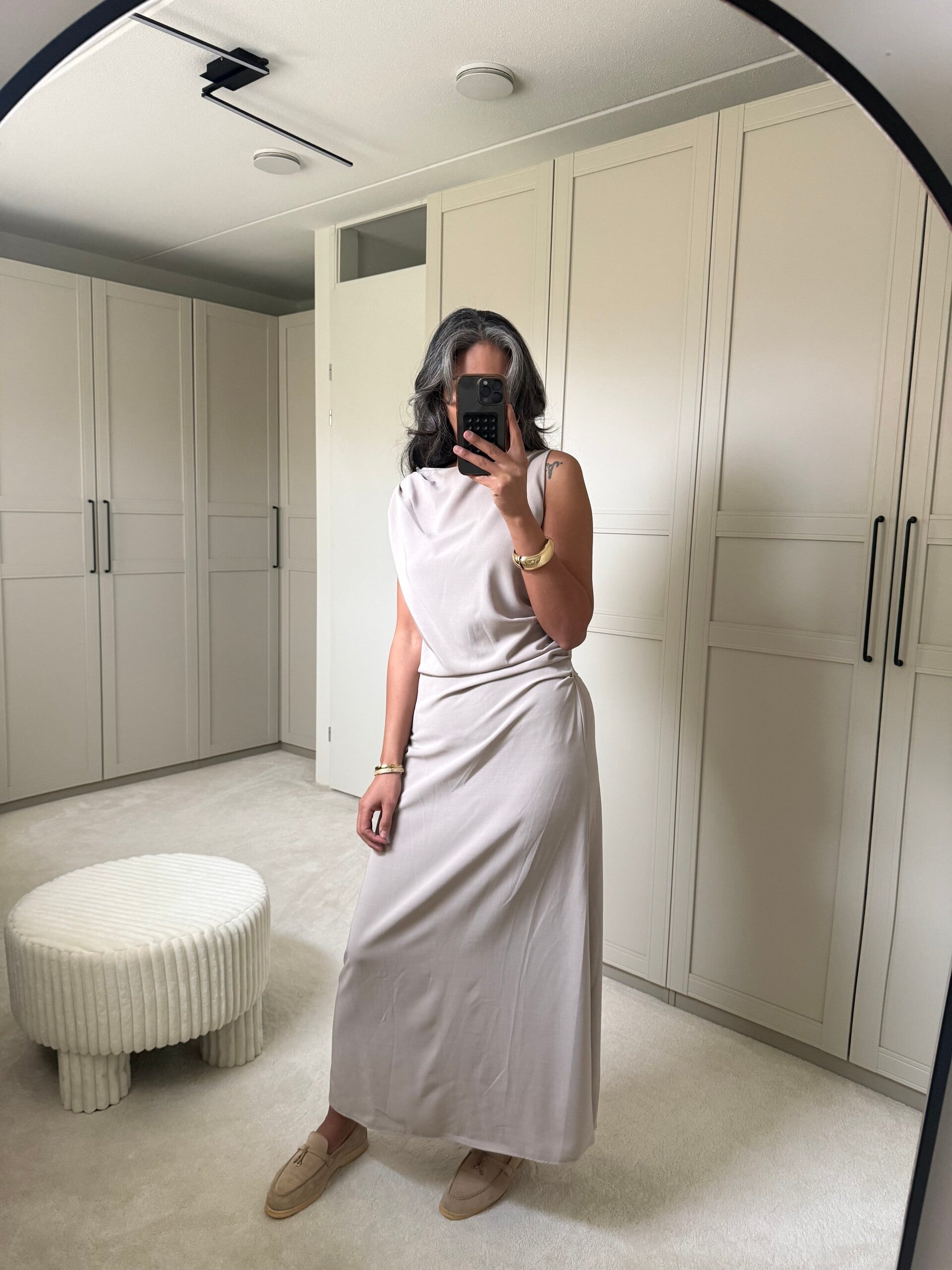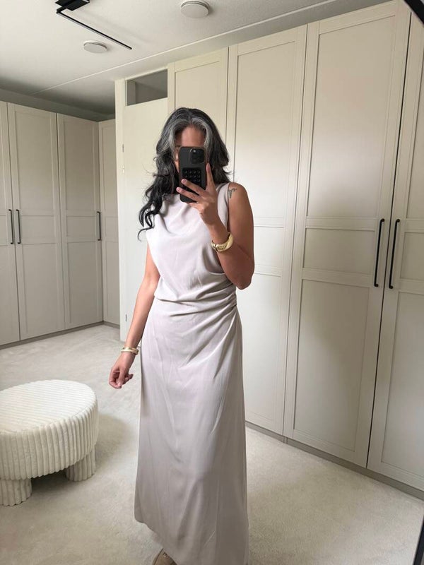 • Jurk geeft mooie geplooide stukken voor