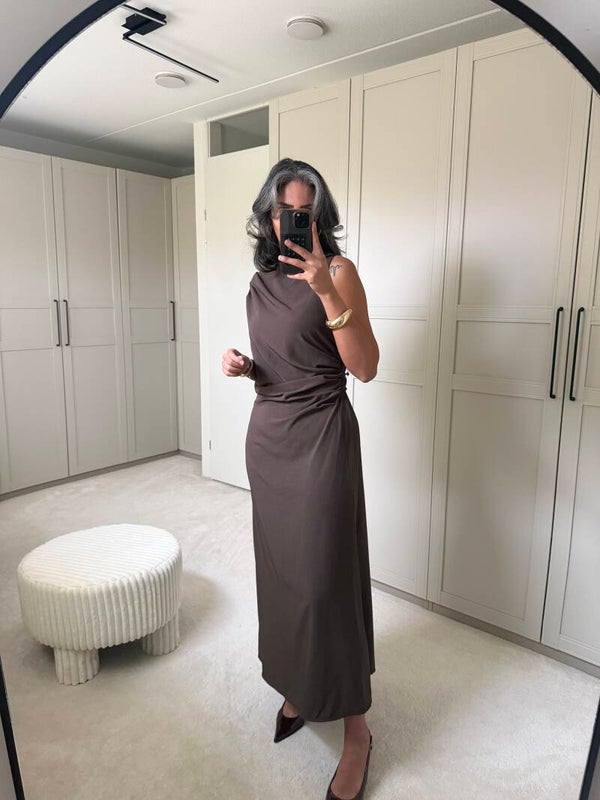 • Jurk geeft mooie geplooide stukken voor